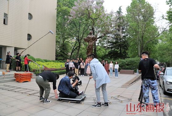 4月26日凌晨2:30,山艺师生披星戴月,冒着冷风细雨,驱车40多公里来到曲水亭街;3:30-4:00,布置场景;4:30-5:30,拍摄;6:00-6:30,早餐;7:00,前往大明湖老舍纪念馆布置场景和拍摄;10:00,到机床二厂踩点、拍摄……当师生凌晨布置拍摄场景的照片在朋友圈发出后,睡梦中醒来的同事和同学纷纷点赞、嘘寒问暖,关切之至,更为师生的敬业、执着精神所折服。参与的师生表示,在校期间,能赶上这种大事,荣幸之至,也十分难得。能用自己的全部热情和所学,为祖国歌唱,为学校争光,再苦再累也不怕。